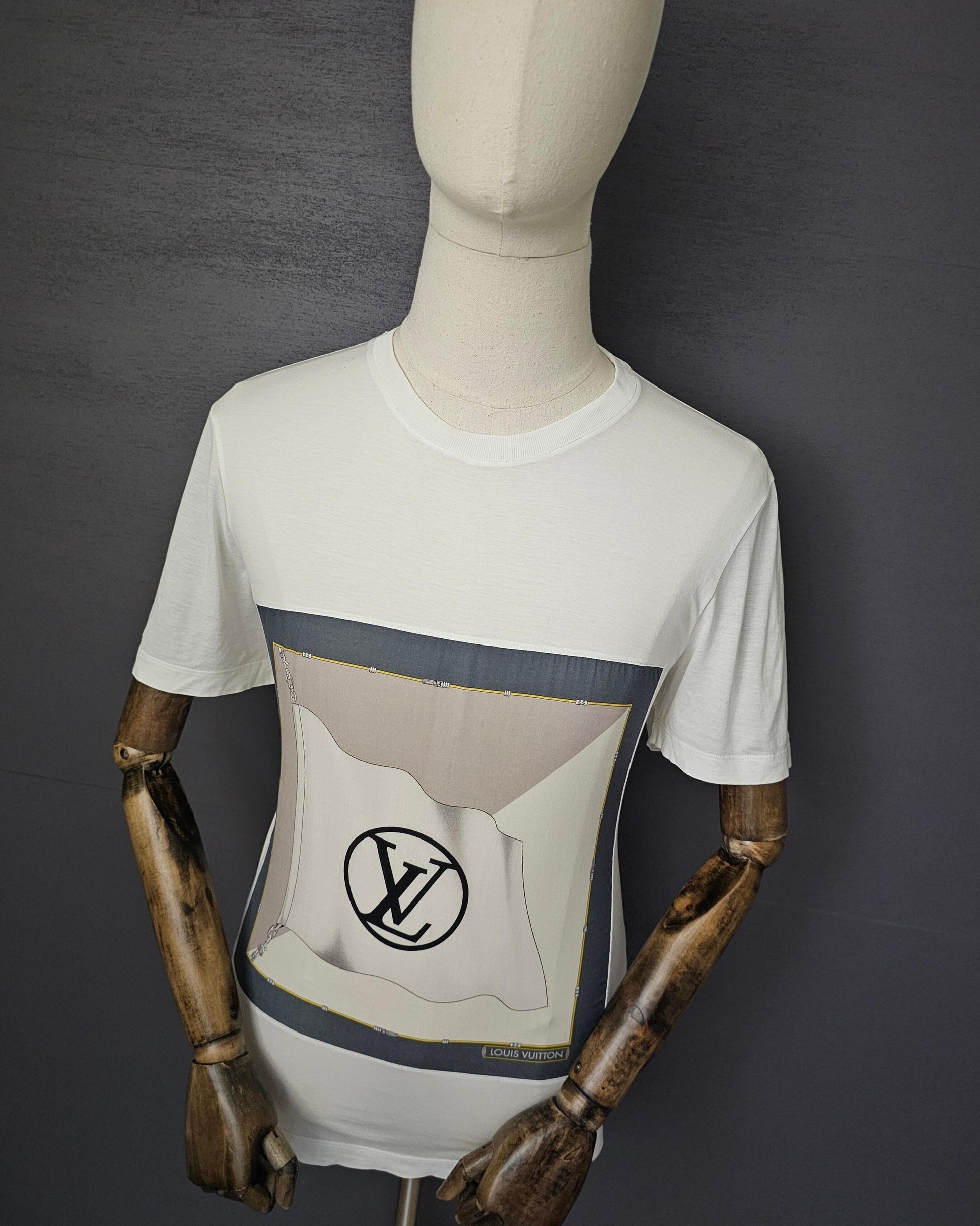 This is a truly remarkable and exceptional t-shirt from the renowned fashion brand Louis Vuitton. This particular piece is incredibly rare and has been meticulously cared for over the last decade, resulting in it being in absolutely remarkable condition. The previous owner of this stunning t-shirt adored it and cherished it, which is evident from the impeccable state it's in. The t-shirt is crafted from an exquisite blend of cotton and silk, which not only makes it ultra-soft but also gives it a refined and luxurious feel. The iconic LV flag on the chest is a symbol of sophistication and style, making this t-shirt an instant classic. You must add this piece to your collection if you're a true fashion connoisseur. But don't wait too long, as finding another one for sale anywhere would be a rare occurrence.