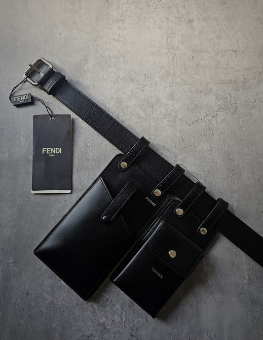 FENDI Vitello Glacier Utility Pouched Leather Belt