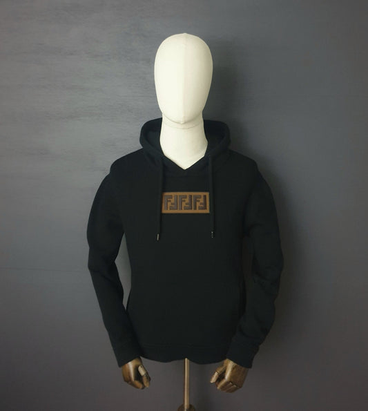 FENDI Logo Appliqued Cashmere Black Jersey Hoodie