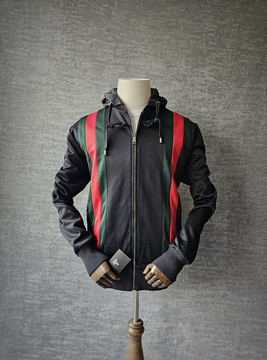 GUCCI Web-Striped Jersey Bomber Hooded Jacket