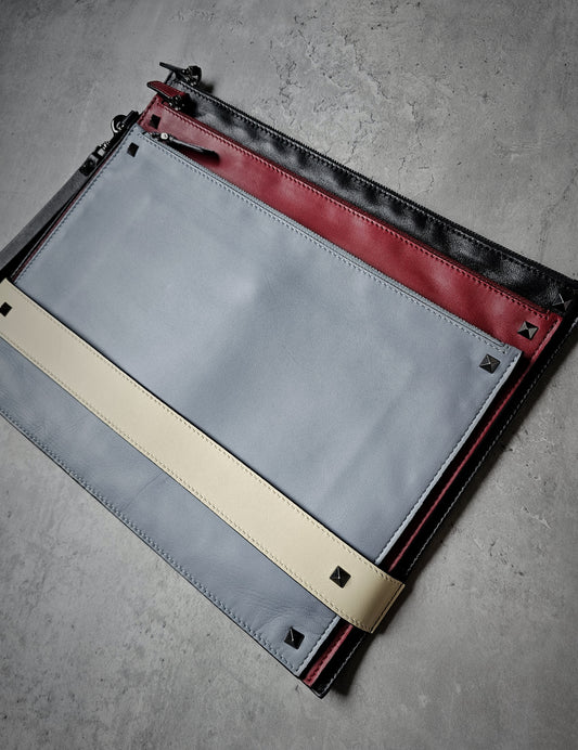 VALENTINO GARAVANI RockStud Leather Triple Wristlet Pouch/ Documents Holder