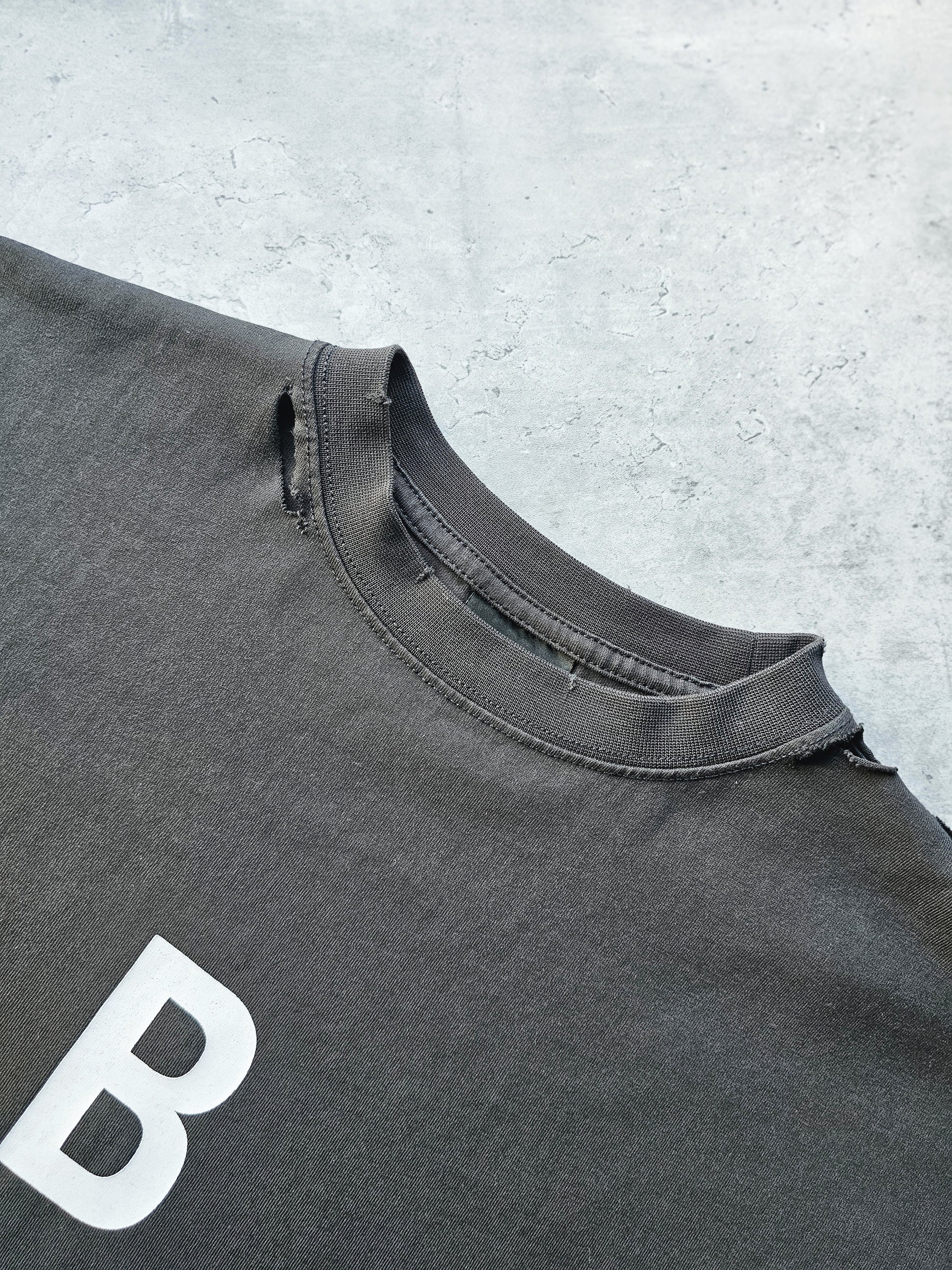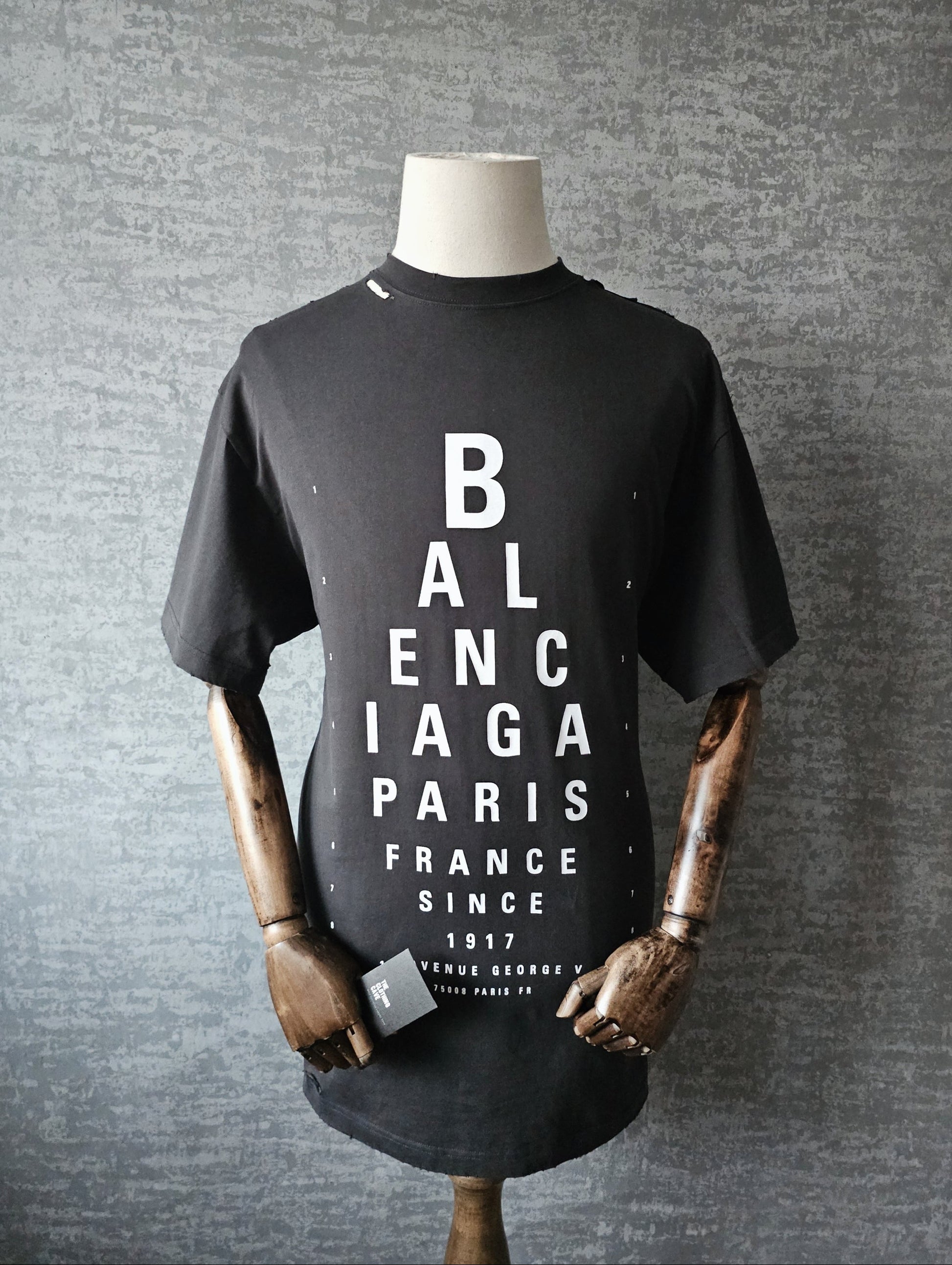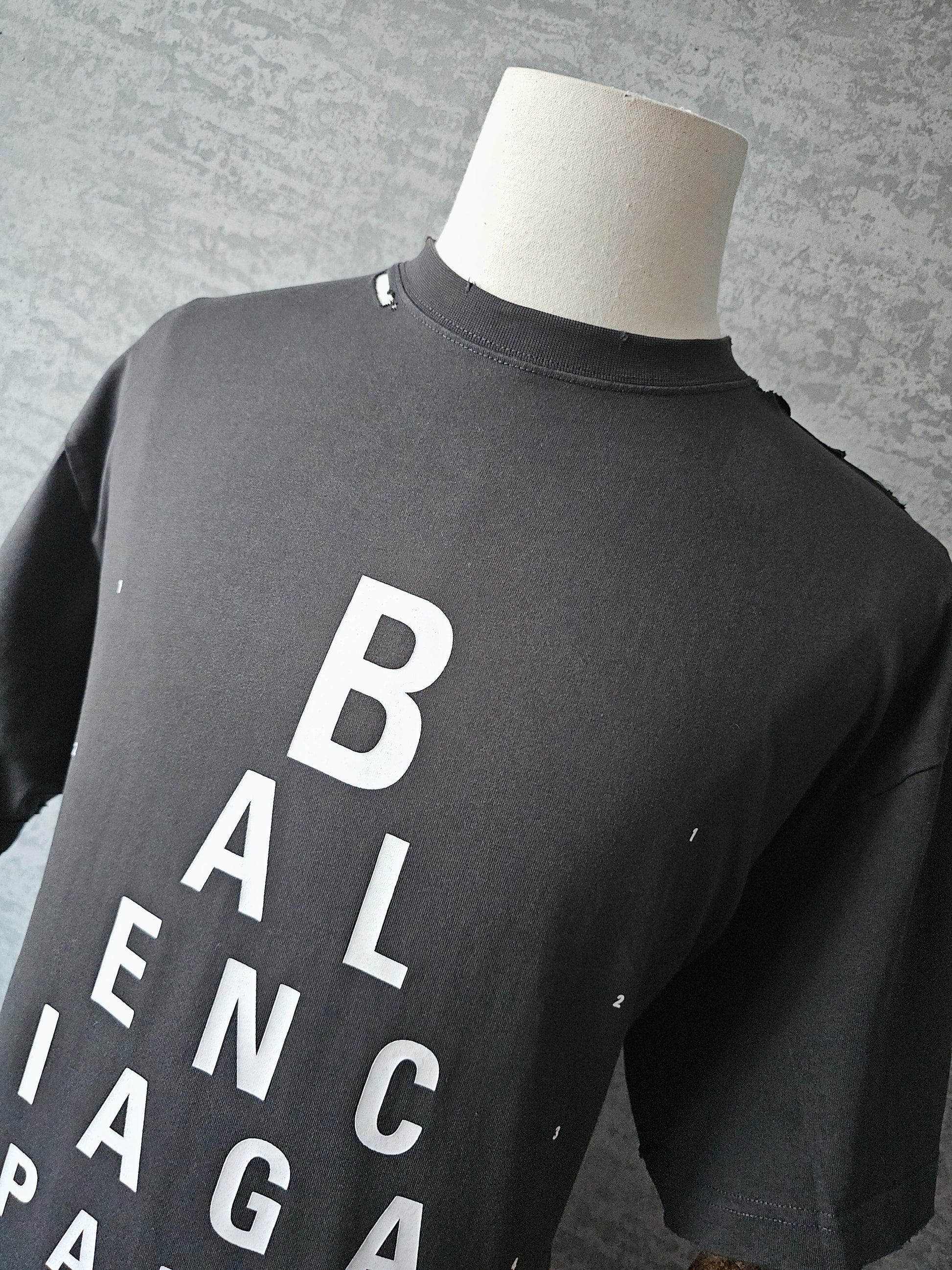 BALENCIAGA Optical Print Distressed Oversized T-Shirt