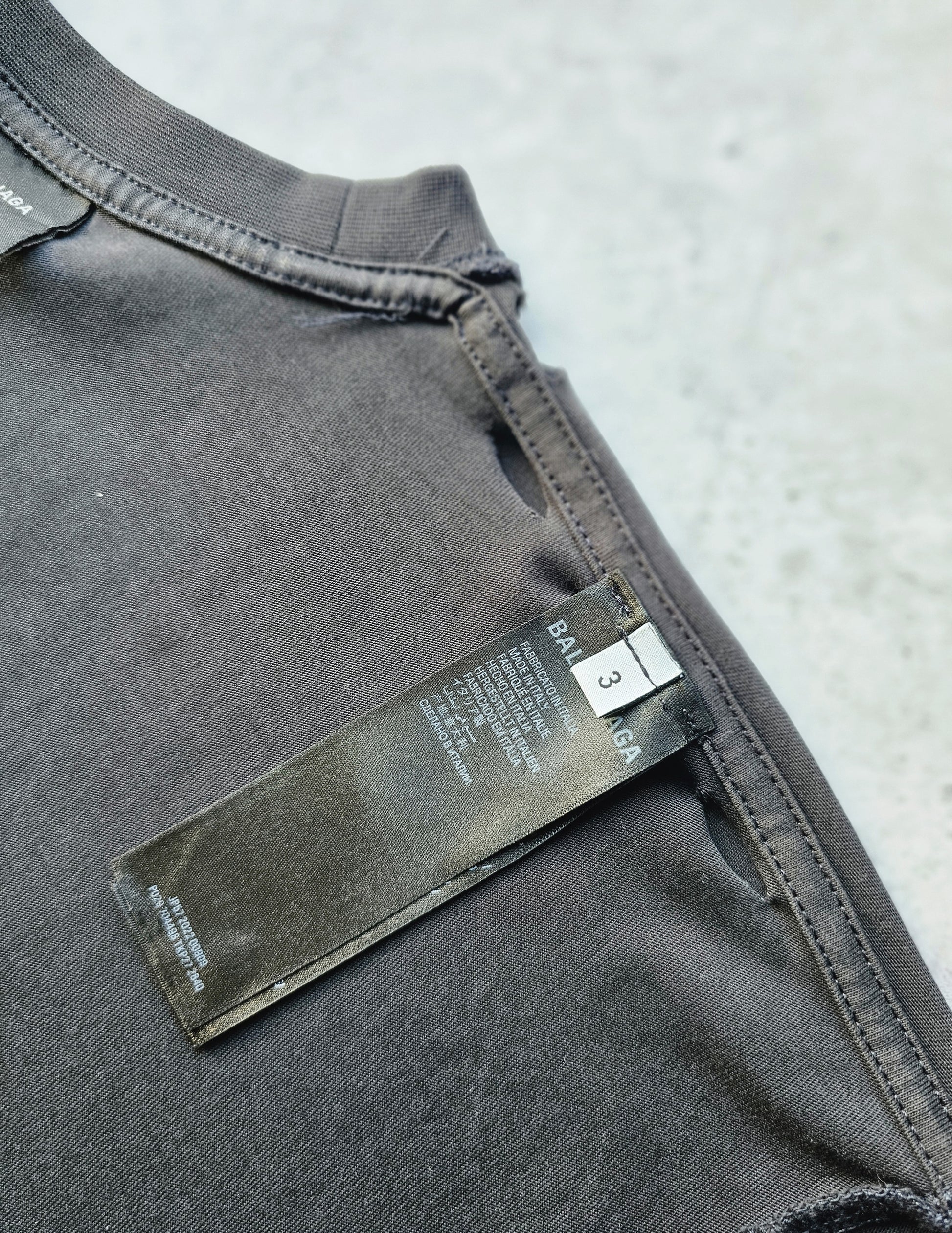 This oversized Balenciaga tee is a signature piece for the brand, featuring their iconic vertical typographic print inspired by archival lettering and Parisian heritage. The deep black cotton provides a striking backdrop for the bold white text, creating a graphic and modern silhouette that is both minimalist and unmistakably Balenciaga. Designed in the brand's relaxed, street-lux fit, it drapes effortlessly while maintaining its structure and presence. This timeless t-shirt is in superb condition and elevates everyday styling with a refined edge—it's both wearable and collectable, making it distinctly Balenciaga.