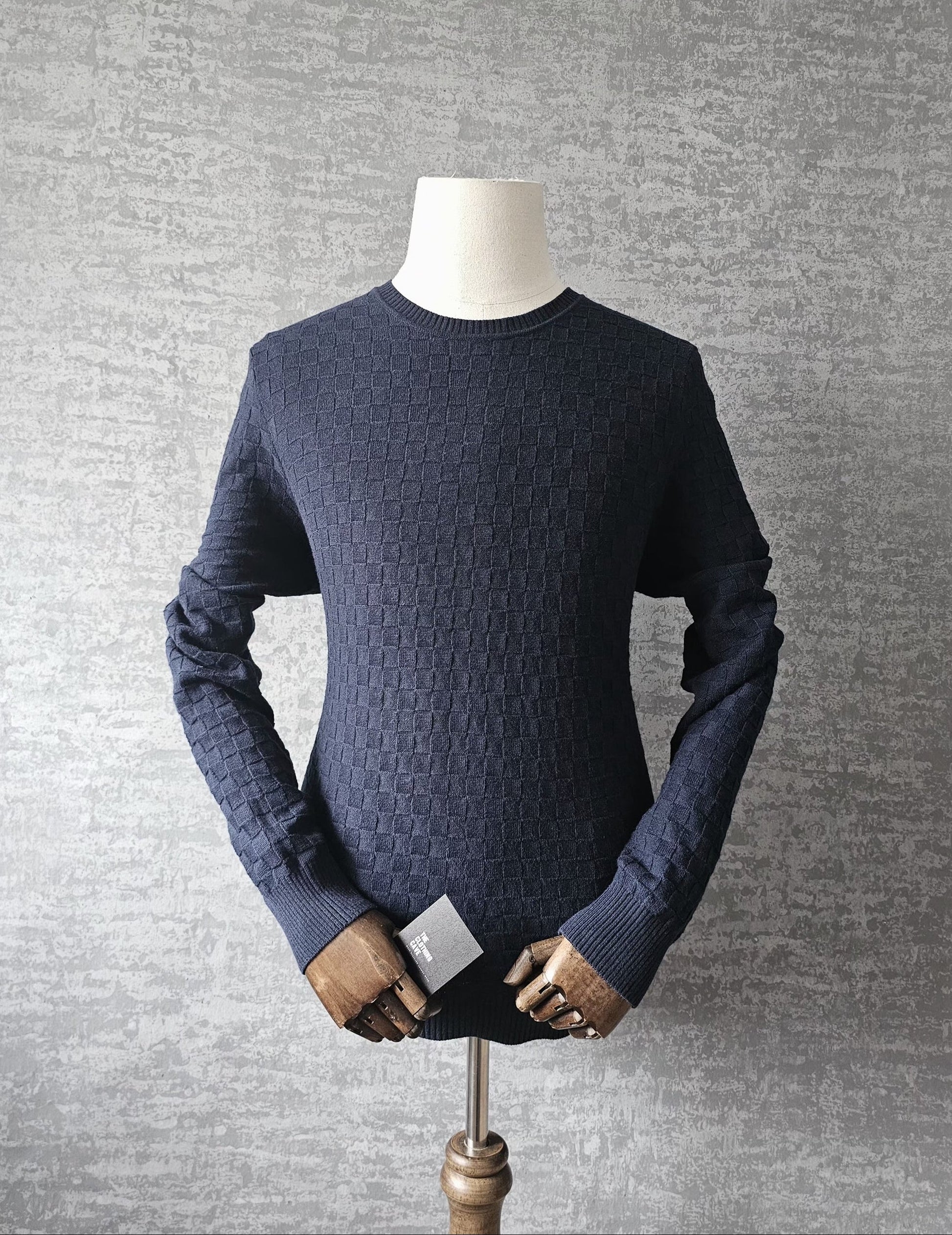 LOUIS VUITTON Damier Crew Knit Sweater in Dark Night Blue