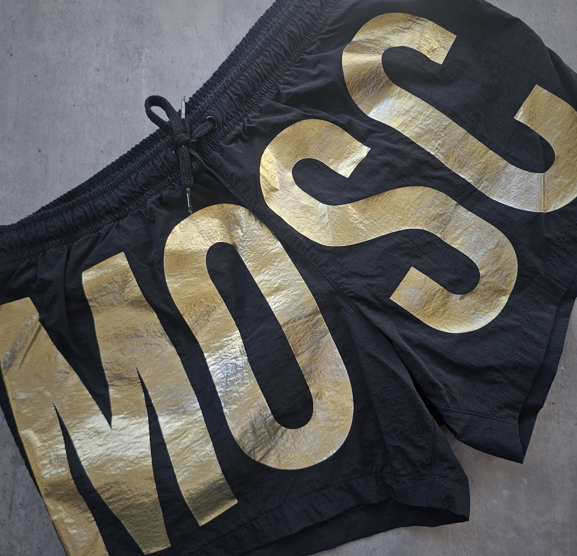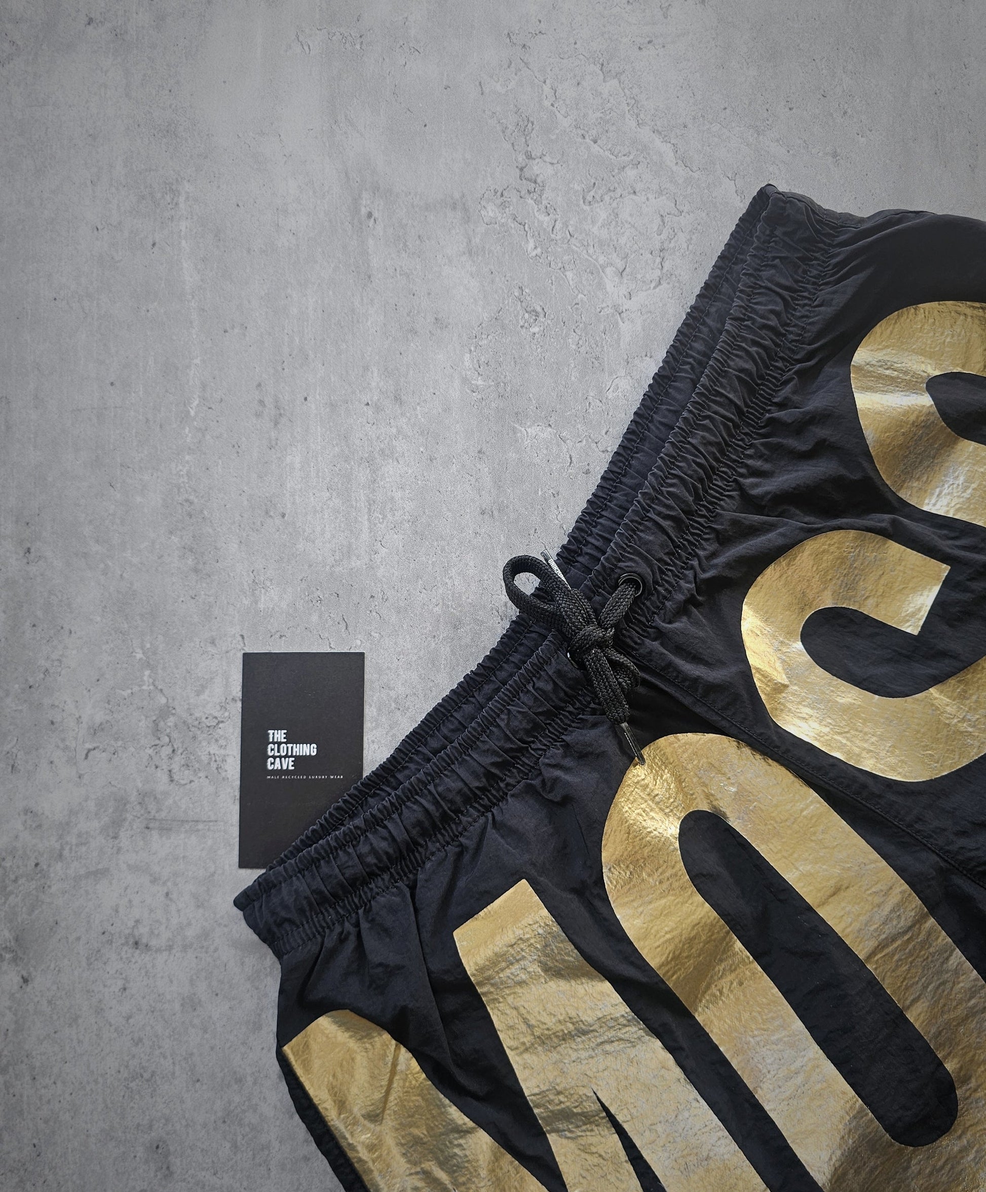 MOSCHINO Gold Foil Logo Black Swim Shorts