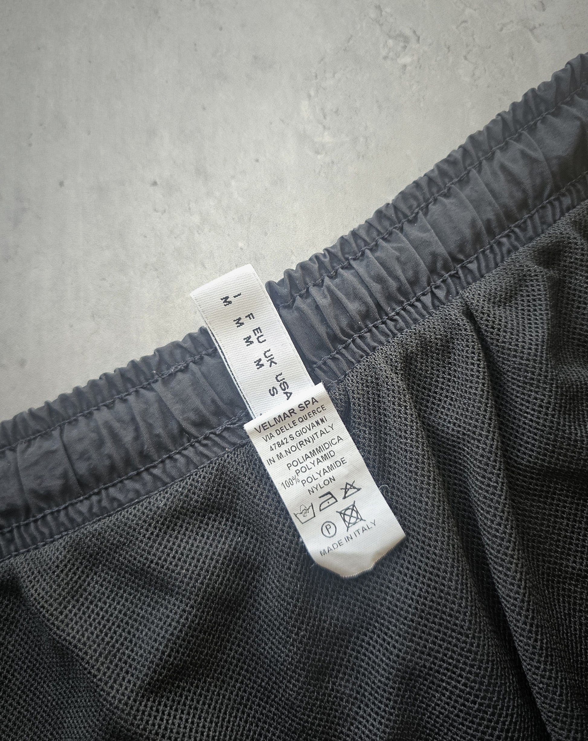 These distinctive swim shorts from Moschino present an appealing aesthetic due to their bold black contrast and gold foil printed logo. The design includes an elastic waistband complemented by an additional drawstring, facilitating a comfortable and tailored fit. Manufactured in Italy, these shorts serve as a dependable choice for individuals looking to express their fashion awareness. It is important to note that some signs of ageing and wear may be visible on the foil; nonetheless, this contributes to their unique and timeless character.