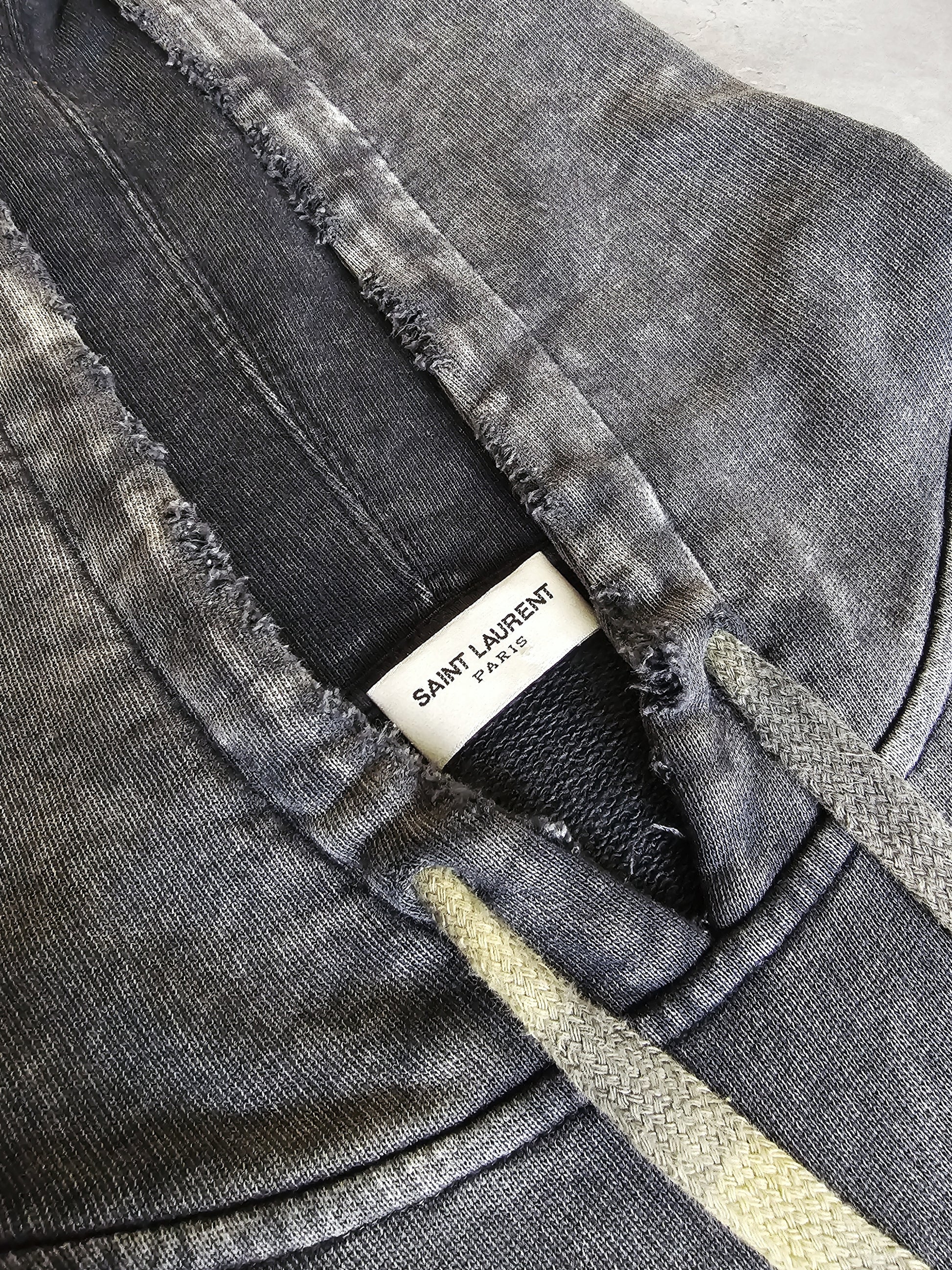 SAINT LAURENT Distressed Washed Cotton Hoodie