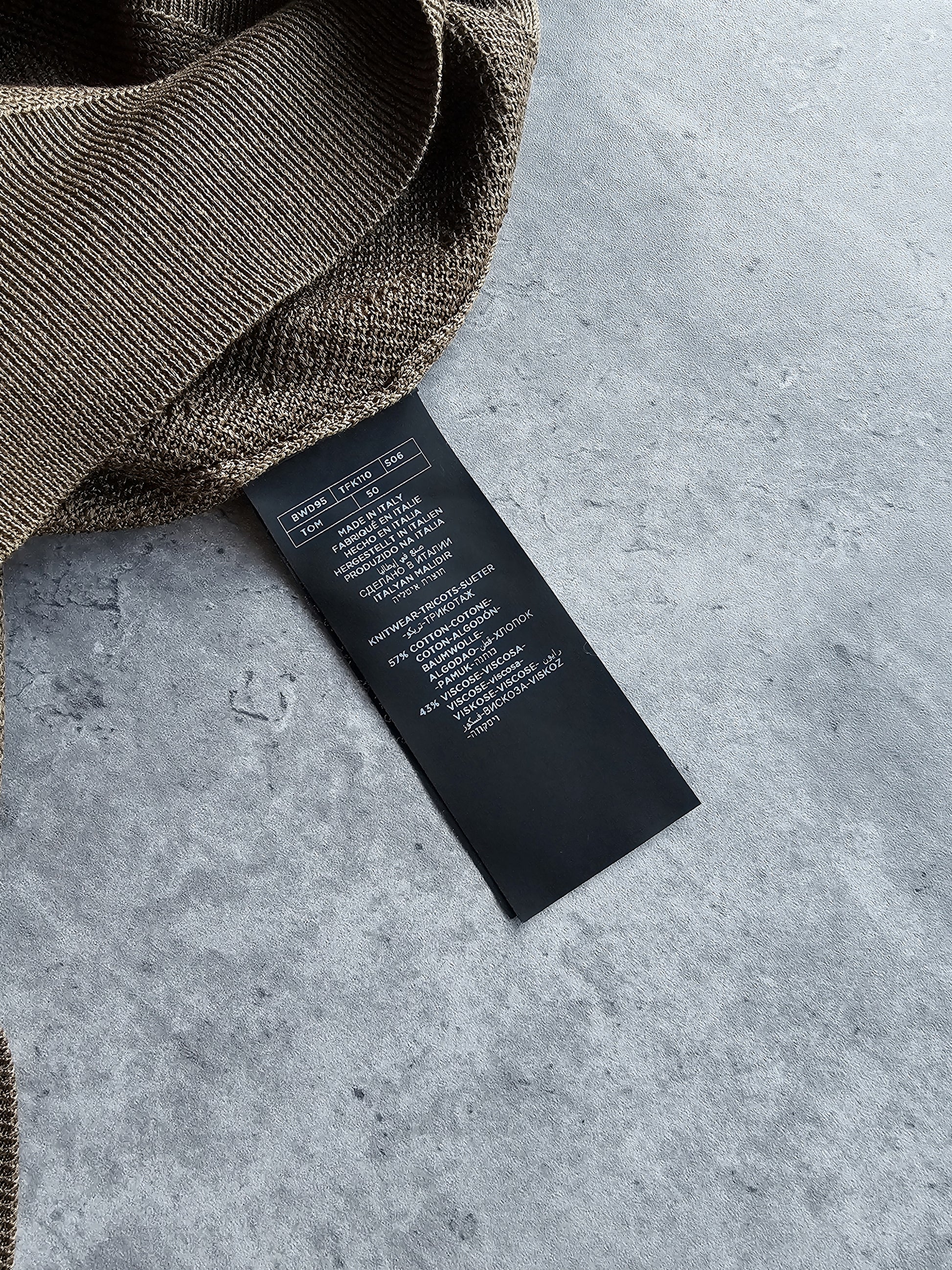 This Tom Ford knit sweater is crafted in a refined army green, finished with a clean, understated silhouette that reflects the brand’s signature luxury minimalism. The fine-gauge knit gives it a smooth, elevated texture, while the structured neckline and tailored fit make it easy to layer or wear on its own.