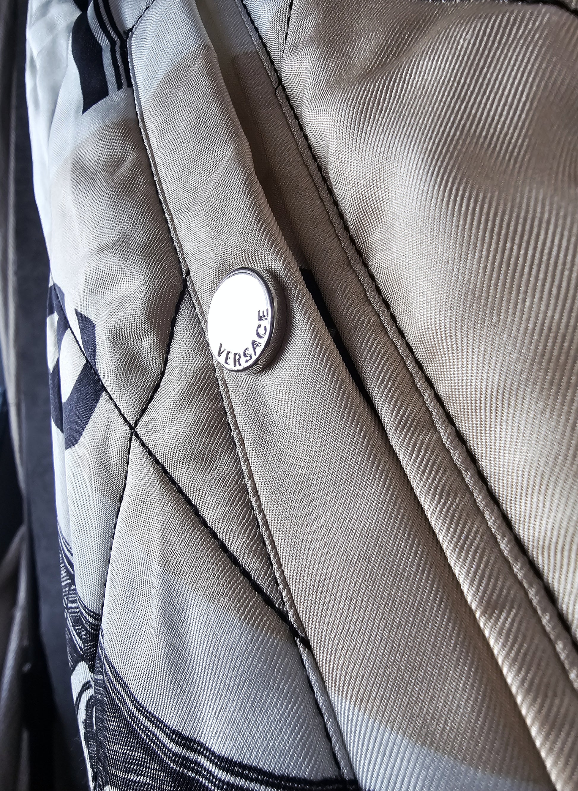 More than just a functional garment, this jacket serves as a symbolic connection between a bygone era and today's modern aesthetic. Its design features intricate graphic patterns and architectural elements that not only enhance its visual appeal but also highlight the craftsmanship that Versace is renowned for.